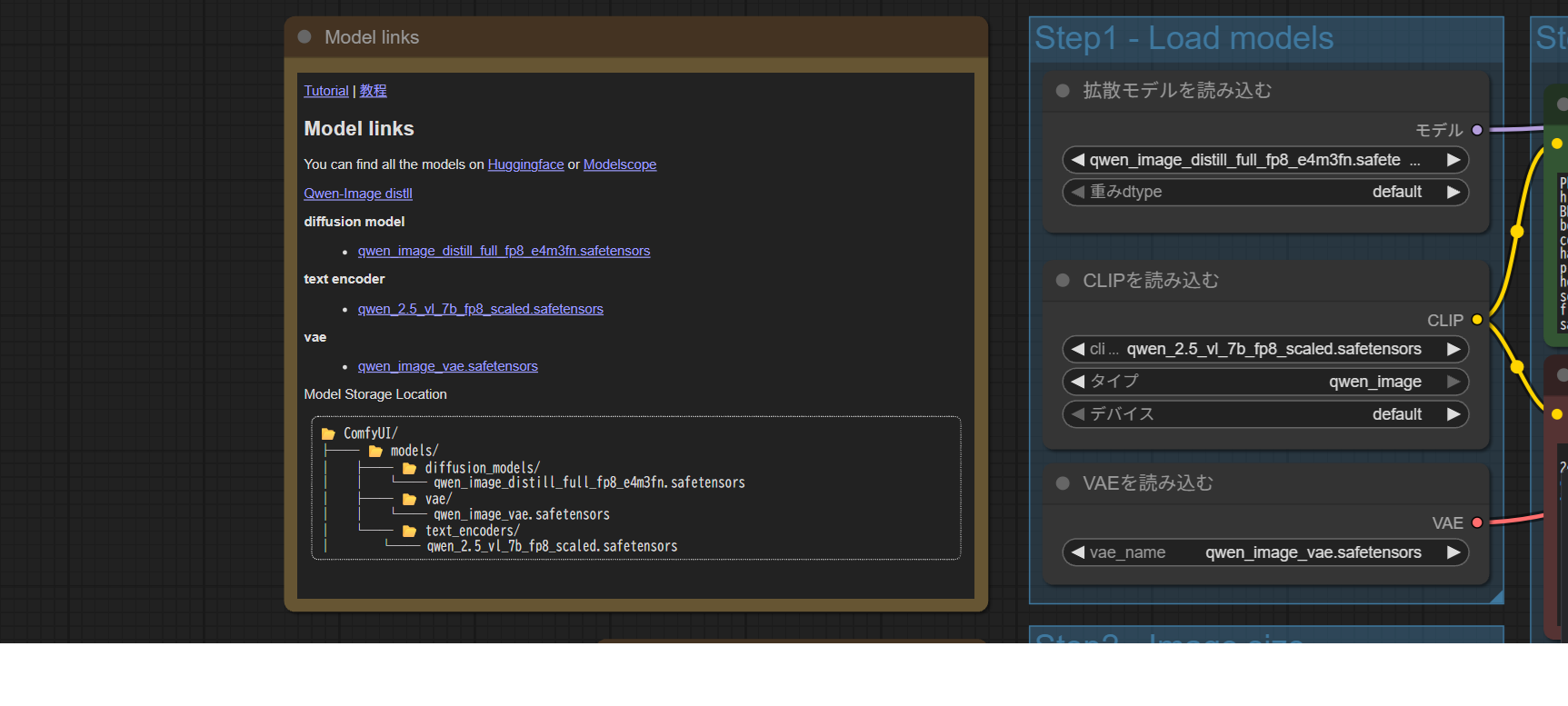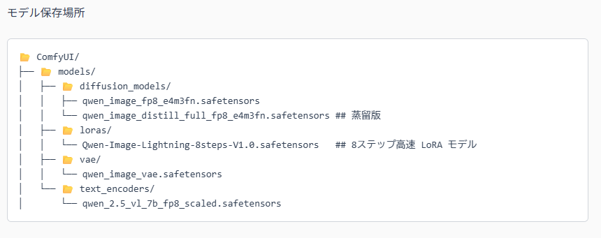 これをダウンロードするページとして、多くのユーザーが参考にしているのが ComfyUI WikiのQwen-Image解説ページ です。