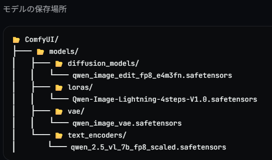 ディフュージョンモデル本体: qwen_image_edit_fp8_e4m3fn.safetensors